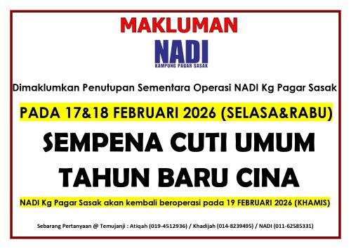 NOTIS PENUTUPAN SEMENTARA NADI SEMPENA CUTI UMUM TAHUN BARU CINA
